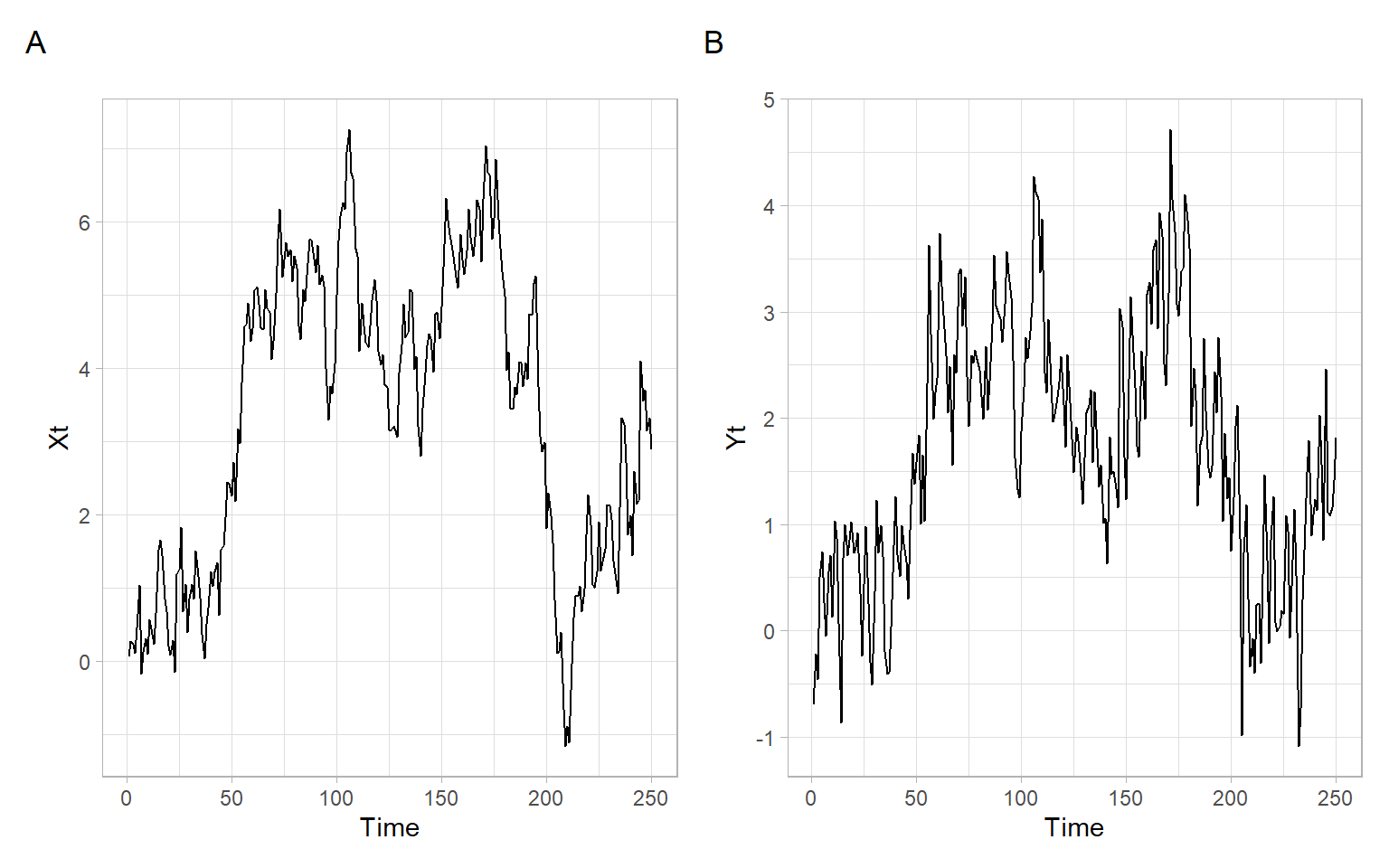 Consider a situation when we are given time series with trends (like in Figure 8.2), we do not know the data generating process (DGP; i.e., the true dependence structure), and we want to use these series in regression analysis.