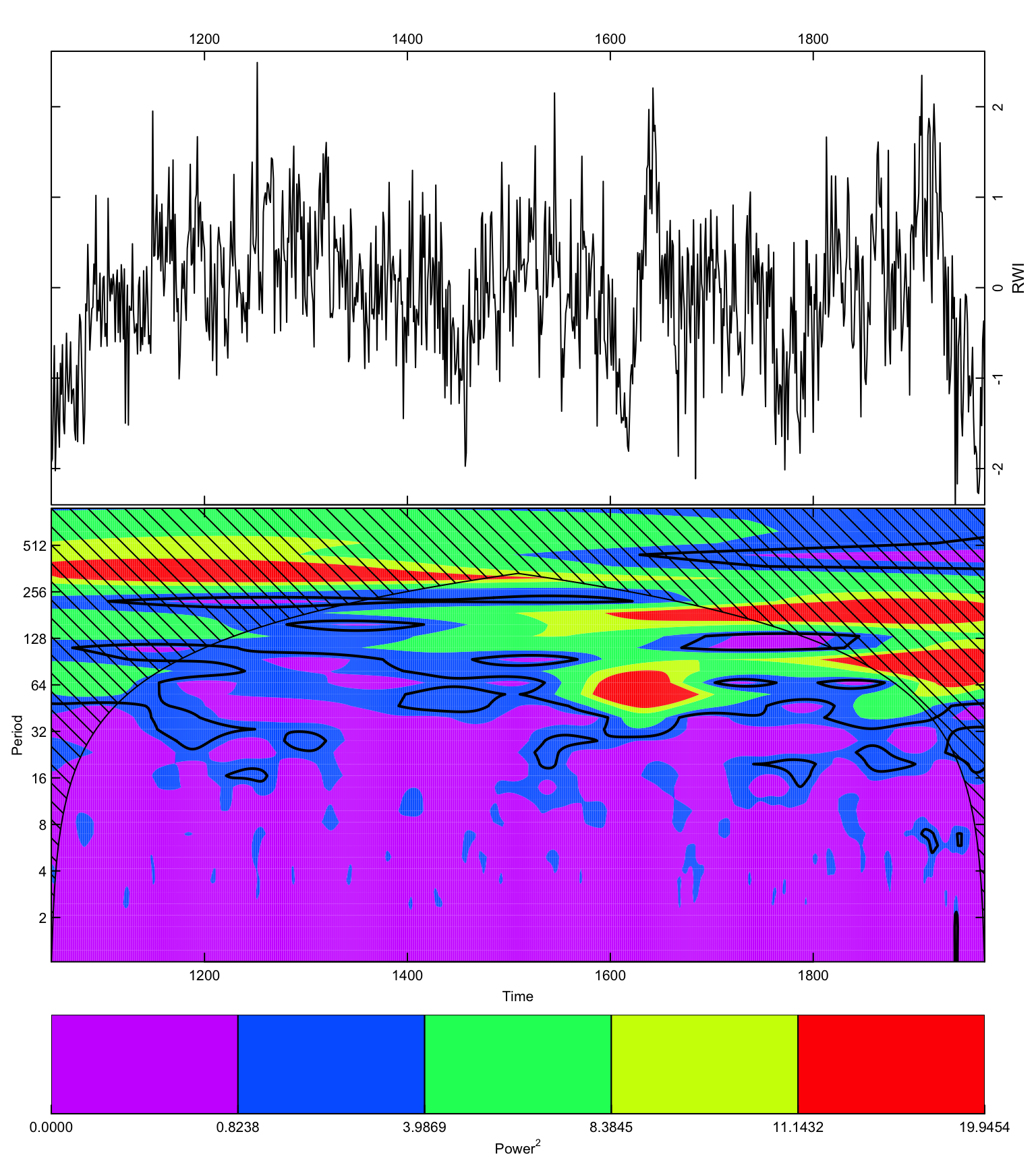 Figure 16.9 shows the results of using the Morlet wavelet to process the NAO time series.