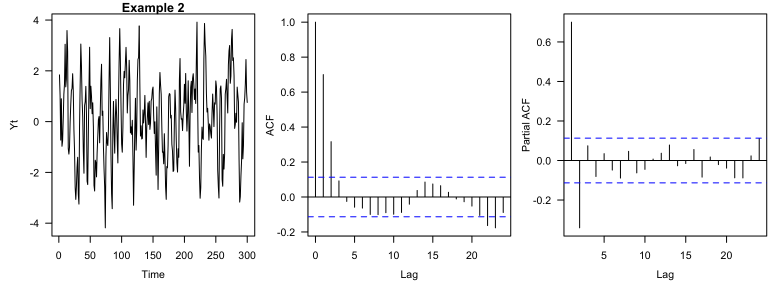- If there is no autocorrelation at the first lag, i.e., \(\mathrm{cor}(X_t, X_{t-1}) = 0\), then \(\mathrm{cor}(X_t, X_{t-2}) = 0\).