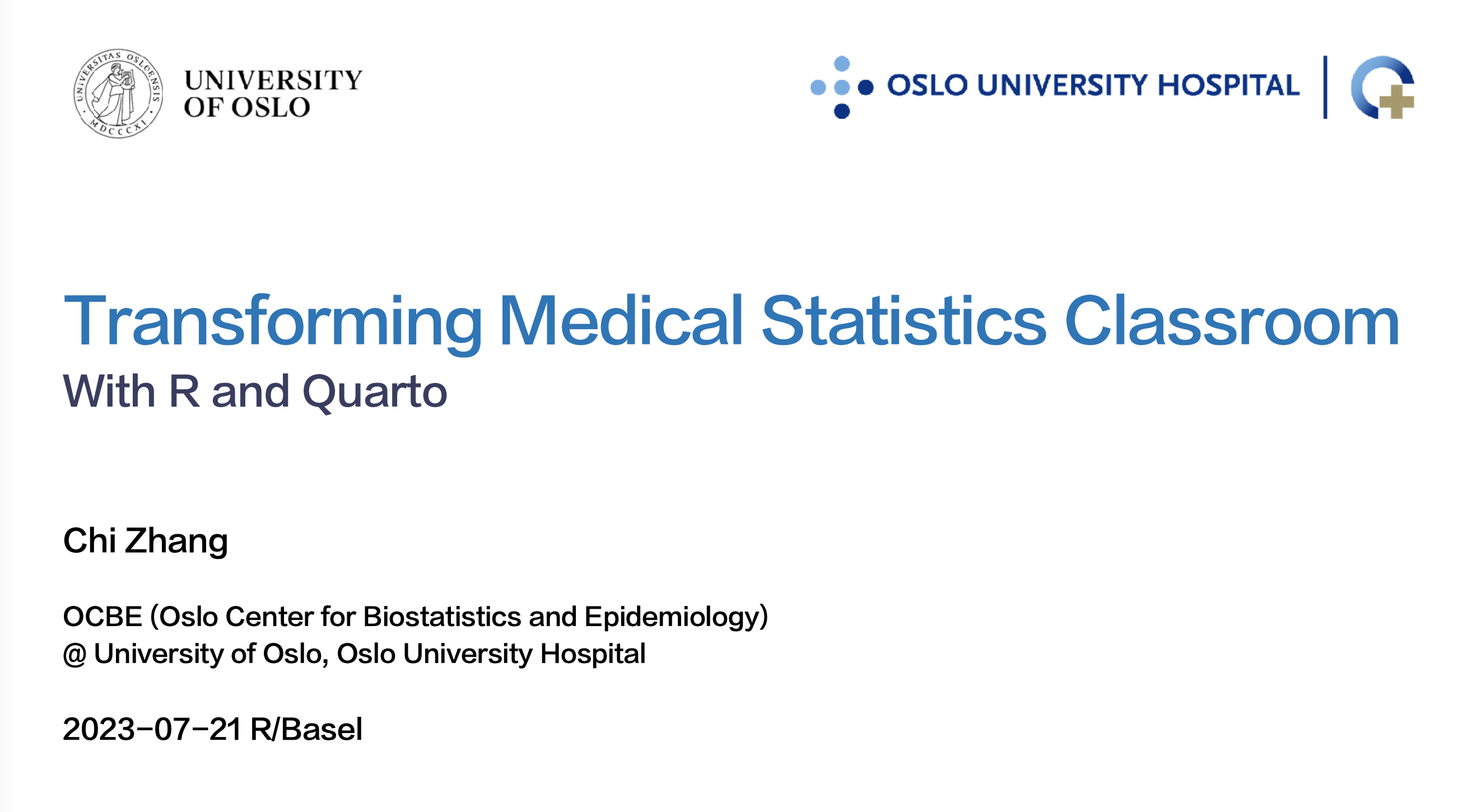 The 8 day introductory statistics course (MF9130) at the Faculty of Medicine, University of Oslo is designed for PhD students in medicine, biology, psychology and other health related fields. Similar to other conventional teaching methods, the course has been focusing largely on theory and hand calculation. The software has been Stata and SPSS, and data analysis was mostly left for the students to figure out on their own.